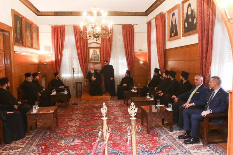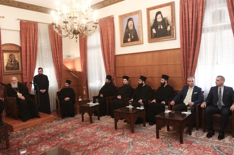 Κατόπιν, ο Μακαριώτατος συναντήθηκε με τον Πρόεδρο της Πανελλήνιας Ένωσης Πληρωμάτων Ιδιωτικών και Επαγγελματικών Θαλαμηγών κ. Γεώργιο Βάλλη.