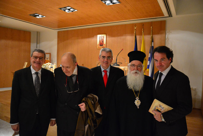 Παρέστησαν οι Σεβασμιώτατοι Μητροπολίτες: Ηλείας κ. Γερμανός, εκ προσώπου του Μακαριωτάτου Αρχιεπισκόπου Αθηνών και πάσης Ελλάδος κ. Ιερωνύμου, και οι Σεβασμιώτατοι Μητροπολίτες Σταγών καί Μετεώρων κ. Σεραφείμ, Μονεμβασίας καί Σπάρτης κ. Ευστάθιος, Λαρίσης καί Τυρνάβου κ. Ιγνάτιος, Βεροίας, Ναούσης και Καμπανίας κ. Παντελεήμων, Καισαριανής Βύρωνος καί Υμηττού κ. Δανιήλ, Πειραιώς κ. Σεραφείμ, Μεσσηνίας κ. Χρυσόστομος, Πατρών κ. Χρυσόστομος, Ιερισσού, Αγίου Όρους καί Αρδαμερίου κ. Θεόκλητος, Μαρωνείας καί Κομοτηνής κ. Παντελεήμων, Θεσσαλιώτιδος καί Φαναριοφερσάλων κ. Τιμόθεος, Τρίκκης καί Σταγών κ. Χρυσόστομος, Κεφαλληνίας κ. Δημήτριος καί Δημητριάδος και Αλμυρού κ. Ιγνάτιος, Πρόεδρος της ΕΙΔ.Σ.Ε. Πολιτιστικής Ταυτότητος. Οι Πανιερώτατοι Μητροπολίτες Θερμοπυλών κ. Ιωάννης και Βελεστίνου κ. Δαμασκηνός. Οι Θεοφιλέστατοι Επίσκοποι Θαυμακού κ. Ιάκωβος καί Μεθώνης κ. Κλήμης, Αρχιγραμματέας της Ιεράς Συνόδου της Εκκλησίας της Ελλάδος, καθώς καί ακαδημαϊκοί, κληρικοί και λαϊκοί.