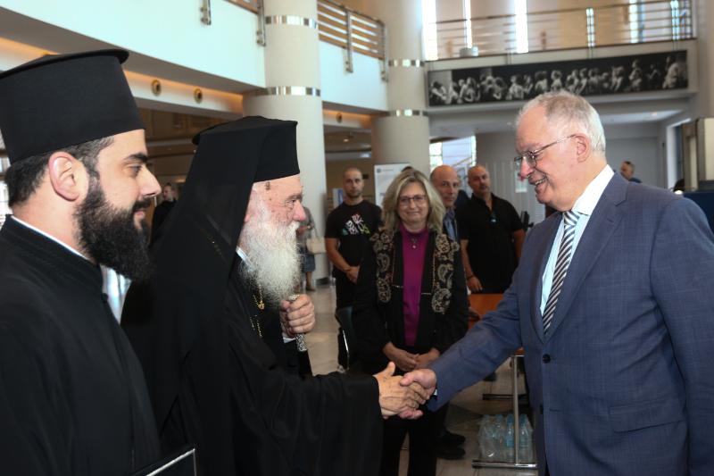 Χαιρετισμό απηύθυναν ακόμη, ο εκπρόσωπος της Εκκλησίας της Σερβίας, Μητροπολίτης Νύσσης κ. Αρσένιος και η κα Ναταλία Πούλου, Πρόεδρος Δ.Σ. Ευρωπαϊκού Κέντρου Βυζαντινών και Μεταβυζαντινών μνημείων.