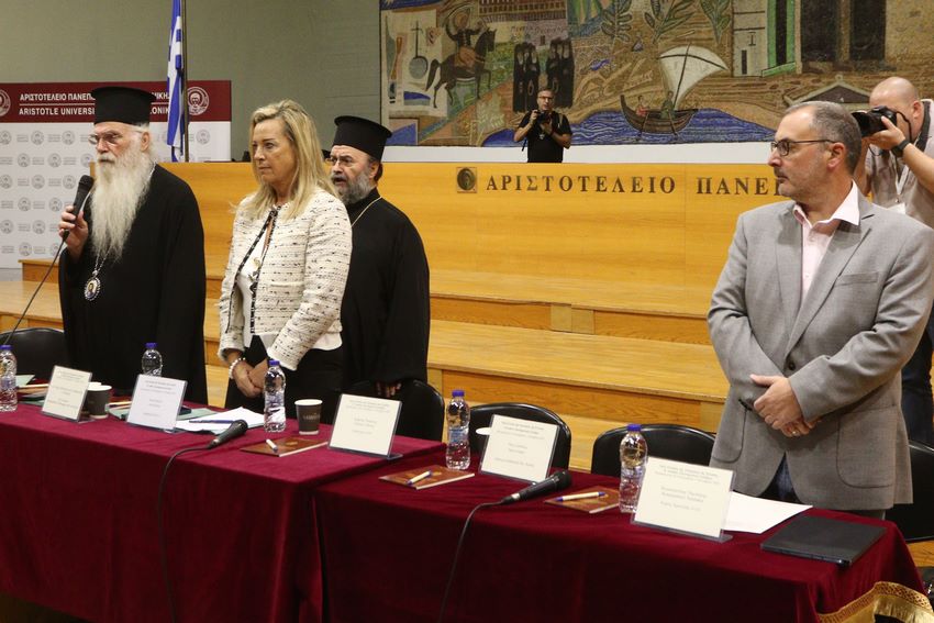 Παρουσία υψηλών προσκεκλημένων πραγματοποιήθηκε η έναρξη της Α’ Συνεδρίας του Συνεδρίου στην Αίθουσα Τελετών του Α.Π.Θ. με τίτλο: «Εκκλησία, Επιστήμη, Πολιτική και Τεχνολογία». Το Προεδρείο της Συνεδρίας συγκροτήθηκε από τον Μητρ. Μεσογαίας & Λαυρεωτικής κ. Νικόλαο και την κα Κίρκη Κεφαλέα, Καθηγήτρια, Ε.Κ.Π.Α.