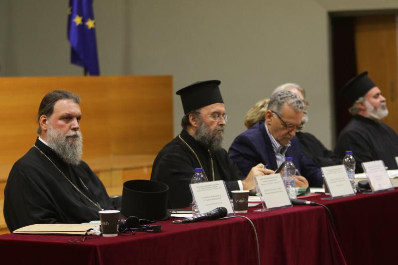 Πρώτος εισηγητής ήταν ο Αρχιεπίσκοπος Νέας Ιουστινιανής και πάσης Κύπρου κ. Γεώργιος, ο οποίος τόνισε ότι θα πρέπει να σκεφτούμε ποια είναι η θέση του ανθρώπου μέσα σ’ αυτή την ψηφιακή εποχή και ποιος είναι ο σκοπός του. Επίσης, σημείωσε ότι η τεχνολογία όπως εξελίχθηκε συνιστά ένα πλαίσιο ζωής και η τεχνητή νοημοσύνη υπερβαίνει τα ανθρώπινα όρια με την τεχνολογία. Ο κόσμος έγινε εικονικός και άυλος. Πολλές φορές νιώθουμε την απομόνωση και την ανατροπή του πολιτισμικού υπόβαθρου.
