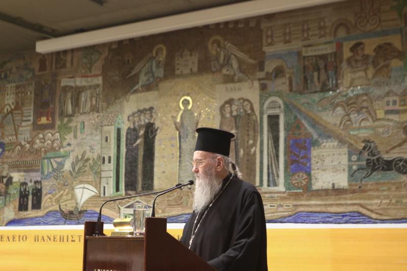Ο Μητροπολίτης Ναυπάκτου και Αγίου Βλασίου κ. Ιερόθεος τόνισε ότι ο όρος «τεχνητή νοημοσύνη» είναι παραπλανητικός και προτίμησε τον όρο «τεχνητή ευφυΐα», καθώς η νοημοσύνη δεν ταυτίζεται με μηχανές. Προειδοποίησε για τον κίνδυνο η τεχνολογία να υπερβεί τον άνθρωπο και να τον καταστήσει «προϊόν» της. Αναφέρθηκε στον Max Weber και στη σύνδεση προτεσταντικής ηθικής και καπιταλισμού, ενώ μίλησε για τον «κατασκοπευτικό καπιταλισμό» και τα εργοστάσιά του, που είναι η τεχνητή νοημοσύνη. Επεσήμανε ότι αυτοί που βρίσκονται πίσω από την τεχνολογία γνωρίζουν σχεδόν τα πάντα για εμάς, ενώ εμείς ελάχιστα για αυτούς. Σημείωσε ότι η Εκκλησία πρέπει να αγωνιστεί για την πνευματική ελευθερία του ανθρώπου και μίλησε για την ανάγκη «ψηφιακής νηστείας» και «ψηφιακής εγκράτειας».