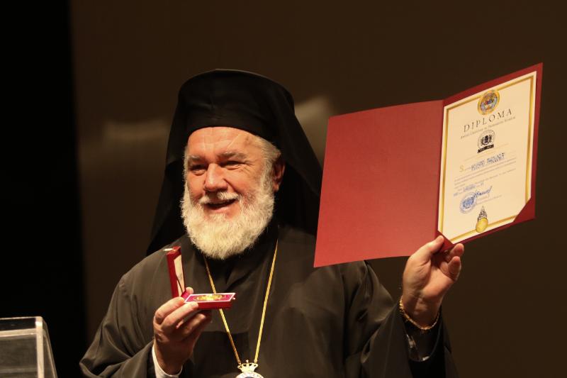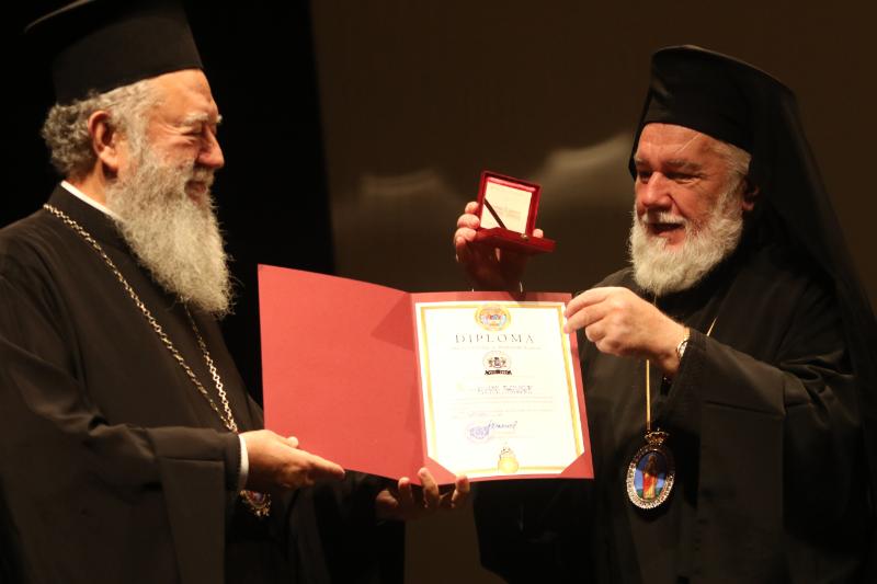 Η Συνεδρία άρχισε με τον χαιρετισμό του εκπροσώπου του Πατριαρχείου Σερβίας, Μητροπολίτη Ναϊσσού κ. Αρσενίου. Στην συνέχεια τον λόγο έλαβε ο εκπρόσωπος του Πατριαρχείου Ρουμανίας, Επίσκοπος Τουλσέας κ. Βησσαρίων, ο οποίος ευχαρίστησε την Ιερά Σύνοδο της Εκκλησίας της Ελλάδος για την πρόσκληση να συμμετάσχει το Πατριαρχείο στο Β’ Διεθνές Επιστημονικό Συνέδριο του Περιοδικού Θεολογία. Ο Επίσκοπος Τουλσέας μεταξύ άλλων ανέφερε: «Σύμφωνα με την ορθόδοξη θεολογία, η ίδια η τεχνολογία δεν αποτελεί κίνδυνο αλλά είναι δώρο του Θεού στον άνθρωπο. Συγχαίρουμε τους διοργανωτές του Συνεδρίου και όσους συμβάλλουν στην έκδοση του περιοδικού, καθώς στις σελίδες του αντικατοπτρίζεται μια ζωντανή και δυναμική θεολογία». Επεσήμανε, μάλιστα, ότι σε έναν κόσμο όπου η τεχνητή νοημοσύνη προχωρά με ταχύτατους ρυθμούς η ερώτηση για τον πόνο, την ασθένεια, την ελευθερία και την αξιοπρέπεια του ανθρώπου χρειάζεται να την απαντήσει η ορθόδοξη Θεολογία. Κατόπιν, απένειμε το χρυσό μετάλλιο του Πατριάρχη Ρουμανίας στο περιοδικό Θεολογία, το οποίο παρέλαβε ο Μητροπολίτης Χαλκίδος κ. Χρυσόστομος αντιπρόεδρος της ΕΜΥΕΕ.
