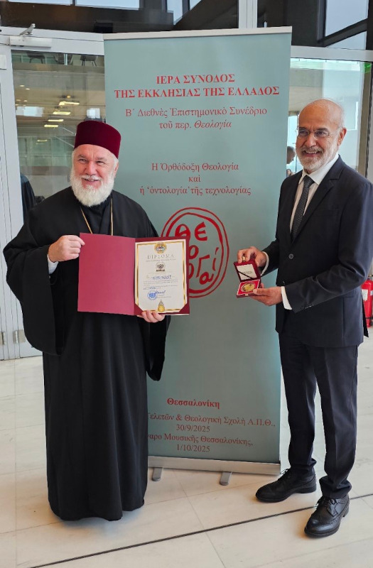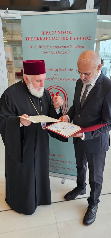 Τις θερμές ευχαριστίες και τα συγχαρητήρια του Πατριάρχη Ρουμανίας κ. Δανιήλ μετέφερε ο εκπρόσωπός του, Επίσκοπος Τουλσέας κ. Βησσαρίων για την πρόσκληση να παραστεί το Πατριαρχείο στο Β’ Διεθνές Επιστημονικό Συνέδριο του Περιοδικού Θεολογία. Ο Επίσκοπος Τουλσέας συνεχάρη στο πρόσωπο του Γραμματέα της Οργανωτικής Επιτροπής του Συνεδρίου κ. Αλέξανδρο Κατσιάρα την Εκκλησία της Ελλάδος για την διεξαγωγή ενός τόσο σημαντικού Συνεδρίου και του προσέφερε ένα επίσημο συλλεκτικό μετάλλιο, έκδοσης του Ρουμανικού Νομισματοκοπείου.