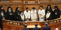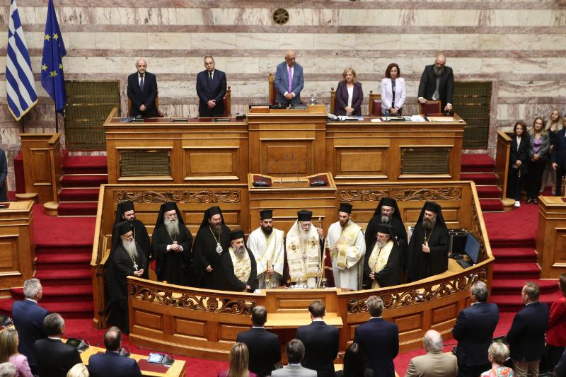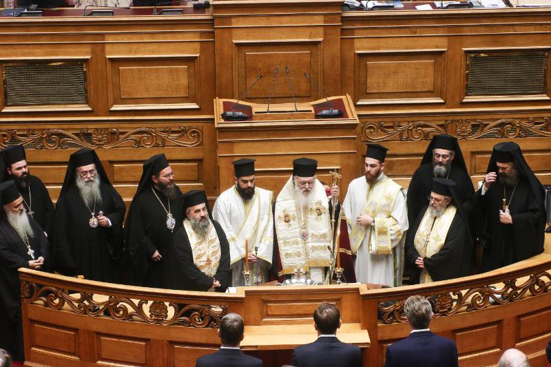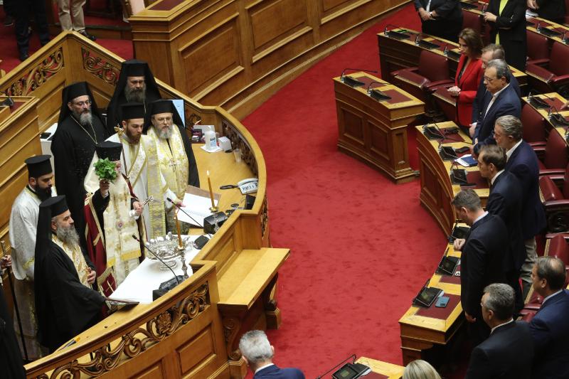 Η καθιερωμένη ακολουθία του Αγιασμού τελέσθηκε σήμερα το πρωί στην Ολομέλεια της Βουλής των Ελλήνων, για την έναρξη των εργασιών της Γ΄ περιόδου της Κ΄ Προεδρευομένης Κοινοβουλευτικής Δημοκρατίας, από τον Αρχιεπίσκοπο Αθηνών και Πάσης Ελλάδος κ. Ιερώνυμο και μέλη της Δ.Ι.Σ..