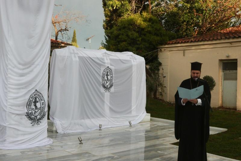 Ακολούθως, ο Μακαριώτατος Αρχιεπίσκοπος και ο κ. Γεώργιος Αγουρίδης, Μέλος του ΔΣ του Ιδρύματος «Σταύρος Νιάρχος» (ΙΣΝ) και Εκπρόσωπος του Ιδρύματος, καθώς και οι Σεβασμιώτατοι Μητροπολίτες Θεσσαλονίκης κ. Φιλόθεος και Πολυανής και Κιλκισίου κ. Βαρθολομαίος, ο Πρόεδρος της ΕΣΕ επί της Ακαδημίας Εκκλησιαστικών Τεχνών Αιδεσιμολογιώτατος Πρωτοπρεσβύτερος κ. Θωμάς Συνοδινός και ο Γενικός Γραμματέας Πολιτισμού κ. Γεώργιος Διδασκάλου προέβησαν στην αποκάλυψη των τριών τμημάτων του Μνημείου των Νεομαρτύρων του Έθνους.