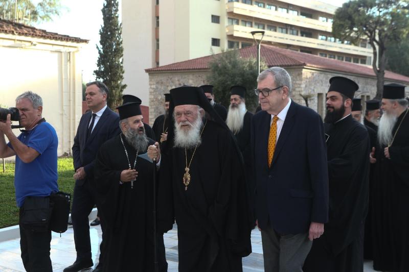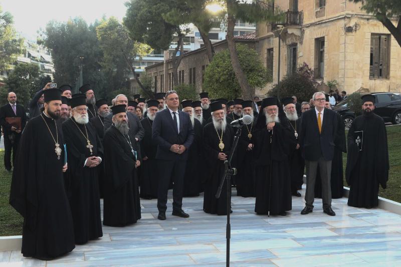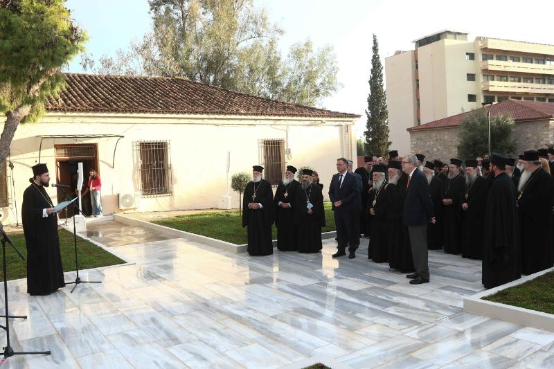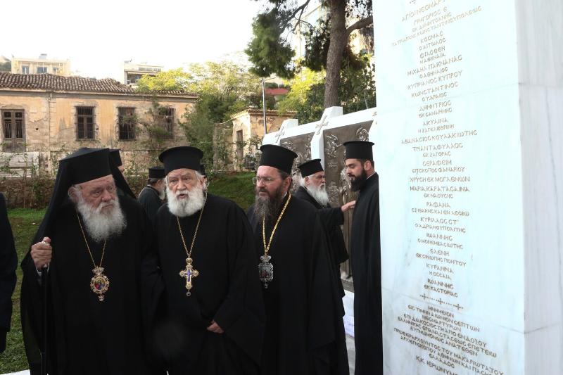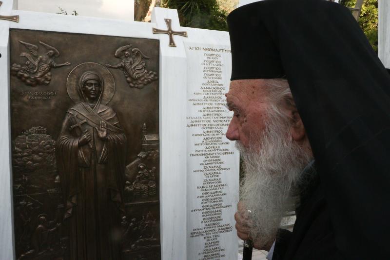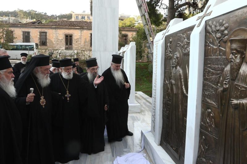 Ο Μακαριώτατος Αρχιεπίσκοπος Αθηνών και πάσης Ελλάδος κ. Ιερώνυμος χαιρέτισε την εκδήλωση, αναφέροντας μεταξύ άλλων ότι «εγκαινιάζουμε απόψε το Μνημείο Νεομαρτύρων του Έθνους σε αυτόν τον πρόσφατα ανακαινισμένο ιστορικό εκκλησιαστικό χώρο. Με τη σεμνή αυτή τελετή και το λαμπρό αυτό Μνημείο θέλουμε να τιμήσουμε και να προβάλουμε ως πρότυπα ζωής τις μορφές των Νεομαρτύρων της Εκκλησίας και του Έθνους. Μορφές ηρωικές, που ακτινοβολώντας το φως του Χριστού, τη δύναμη και την τόλμη της θυσιαζομένης αγάπης, τη φιλοπατρία και τα ιδανικά που εξανθρωπίζουν τον άνθρωπο, συνέβαλαν τα μέγιστα στη διάσωση του Γένους μας, παρά την υποδούλωσή του επί αιώνες στους εξ ανατολών κατακτητές.