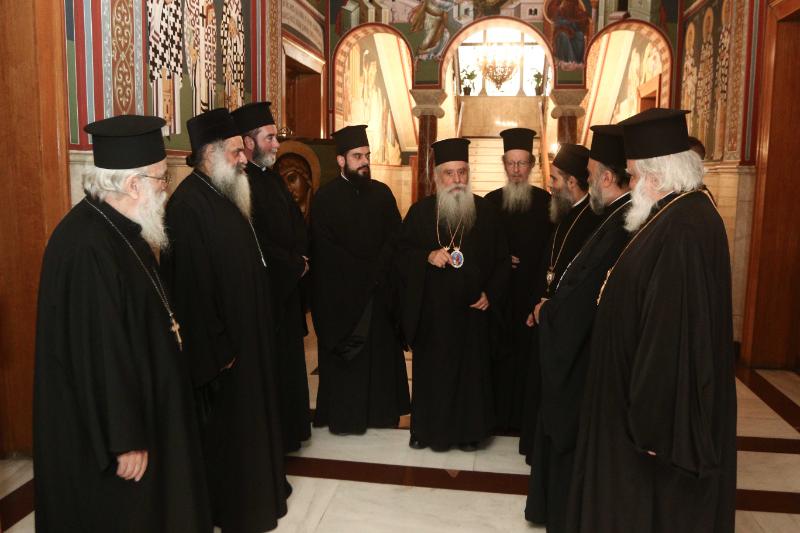 Αμέσως μετά, ο Αρχιεπίσκοπος κ. Ιερώνυμος καλωσόρισε σε ιδιαίτερα θερμό κλίμα τον Αρχιεπίσκοπο Σινά και του ευχήθηκε να ξεπεραστούν οι όποιες δυσκολίες και να επιλυθούν ζητήματα που αφορούν στην Ιερά Μονή.