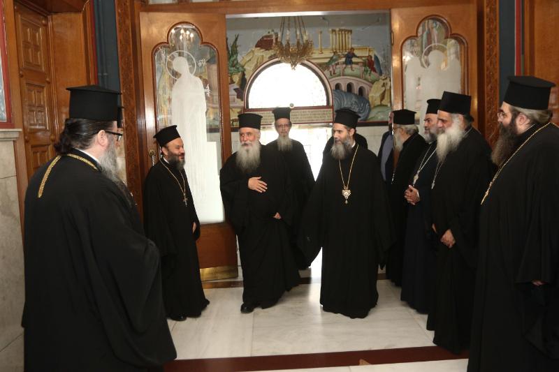 Στην είσοδο έγινε δεκτός από τον Πρωτοσύγκελλο της Αρχιεπισκοπής Αθηνών, Θεοφιλέστατο Επίσκοπο Χριστουπόλεως κ. Βαρνάβα.