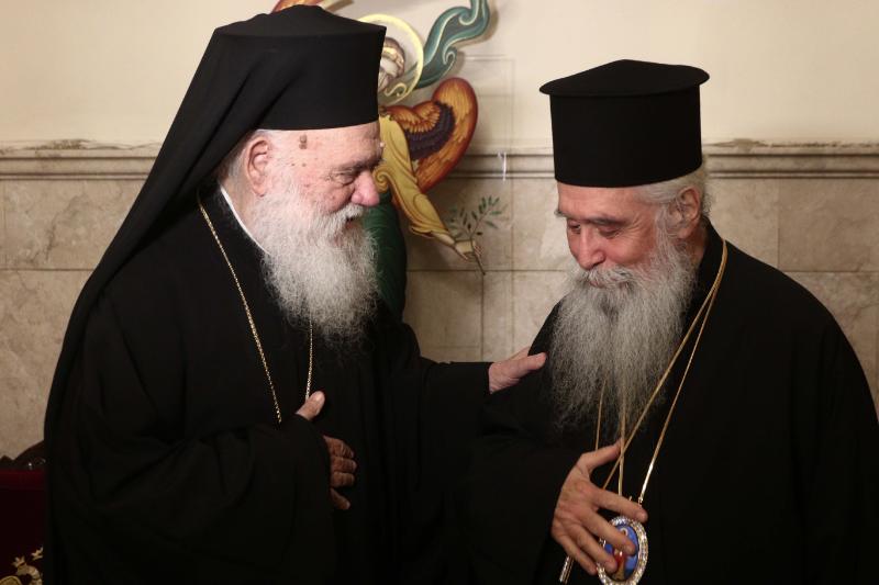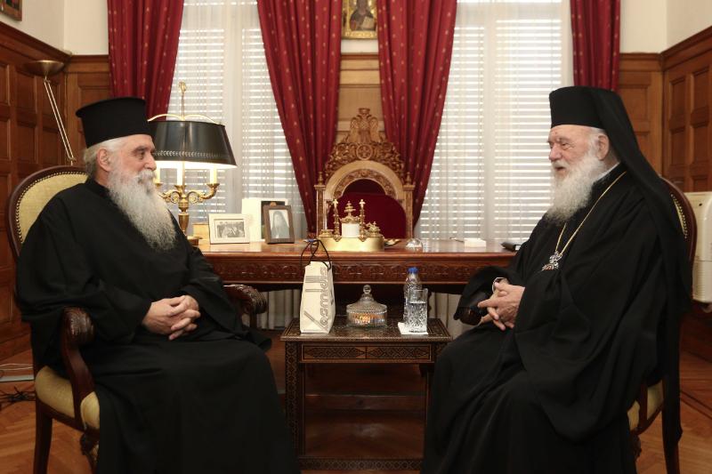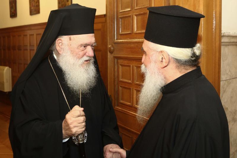 O Αρχιεπίσκοπος Σινά κ. Συμεών στον Αρχιεπίσκοπο Αθηνών και πάσης Ελλάδος κ. ΙερώνυμοO νέος Αρχιεπίσκοπος Σινά, Φαράν και Ραϊθώ και Ηγούμενος της ιστορικής Μονής της Αγίας Αικατερίνης του Θεοβαδίστου Όρους Σινά κ. Συμεών, επισκέφθηκε μετά την Χειροτονία του, τον Αρχιεπίσκοπο Αθηνών και πάσης Ελλάδος κ. Ιερώνυμο.