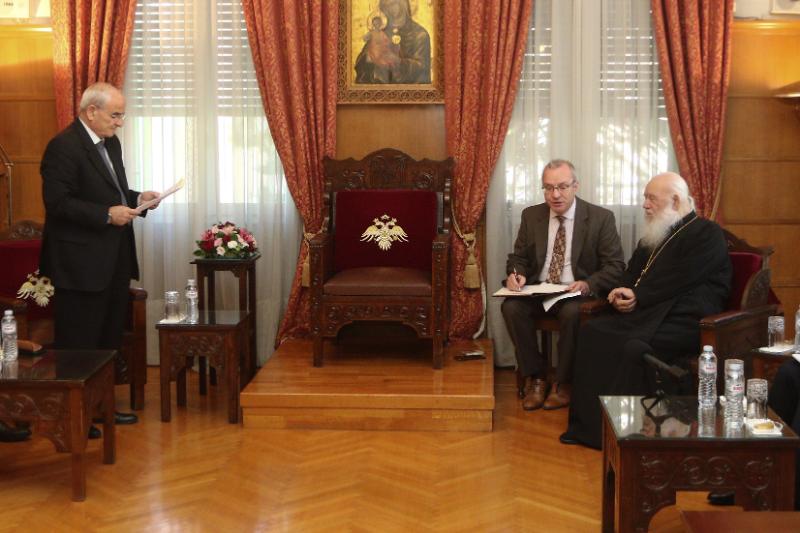 Παρόντες στη συνάντηση ήταν ο Πρωτοσύγκελλος της Ιεράς Αρχιεπισκοπής Αθηνών, Επίσκοπος Χριστουπόλεως Βαρνάβας, ο Γενικός Αρχιερατικός Επίτροπος της Αρχιεπισκοπής, Πρωτοπρεσβύτερος Εμμανουήλ Παπαμικρούλης, Γραμματέας της Συνοδικής Επιτροπής επί των Διορθοδόξων και Διαχριστιανικών Σχέσεων της Εκκλησίας της Ελλάδος.
