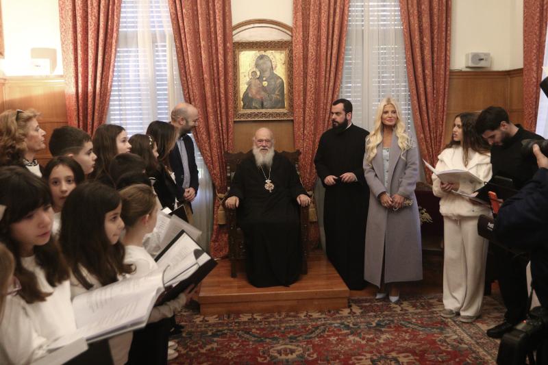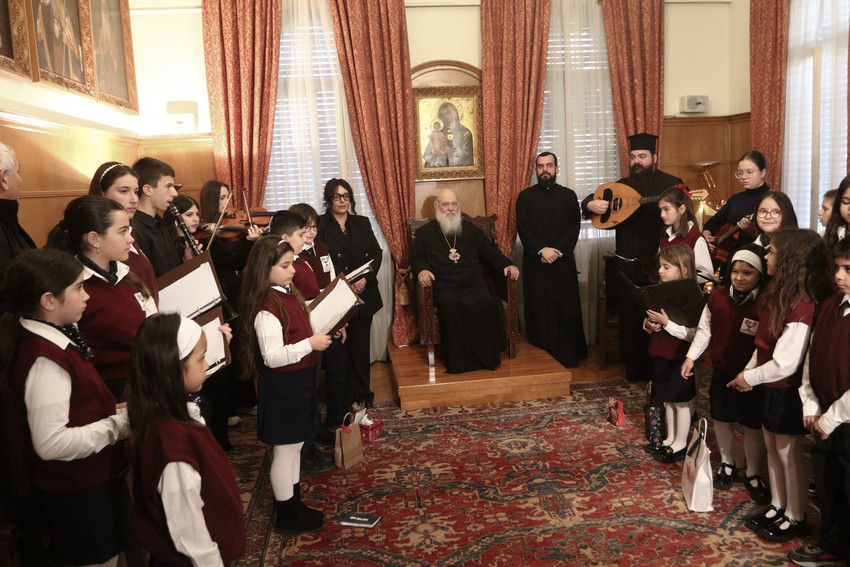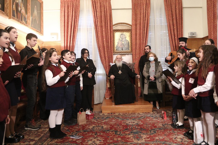 Παραδοσιακά χριστουγεννιάτικα τραγούδια και κάλαντα έψαλαν σήμερα, από νωρίς το πρωί, στον Αρχιεπίσκοπο Αθηνών και πάσης Ελλάδος κ. Ιερώνυμο, φορείς και σύλλογοι από όλη τη χώρα.