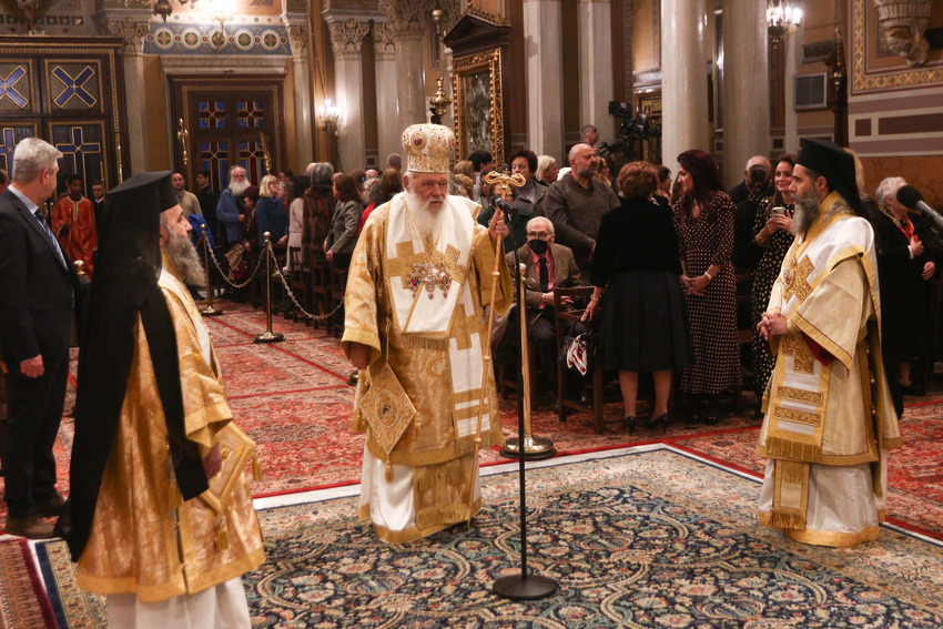 Ο Αρχιεπίσκοπος τέλεσε το μυστήριο της Θείας Ευχαριστίας στον Ιερό Μητροπολιτικό Ναό Αθηνών και συλλειτούργησαν οι Επίσκοποι Σκιάθου κ. Ιωάννης, Αρχιγραμματέας της Ιεράς Συνόδου της Εκκλησίας της Ελλάδος και Χριστουπόλεως κ. Βαρνάβας, Πρωτοσύγκελος της Ιεράς Αρχιεπισκοπής Αθηνών. Το μήνυμα του Αρχιεπισκόπου για τα Χριστούγεννα ανέγνωσε ο ιεροκήρυκας του Καθεδρικού Ι. Ναού Αθηνών, Αρχιμανδρίτης Νεκτάριος Καρσιώτης.