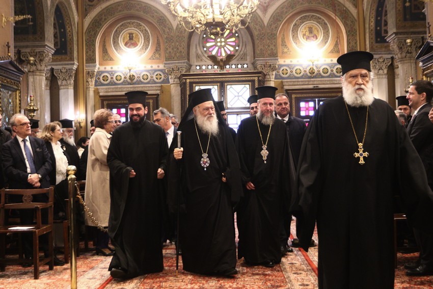 Η τελετή πραγματοποιήθηκε στον Ιερό Μητροπολιτικό Ναό Αθηνών και παρέστησαν ο Διευθυντής του Γραφείου Εκπροσωπήσεως του Οικουμενικού Πατριαρχείου στην Αθήνα, Μητροπολίτης Λαοδικείας κ. Θεοδώρητος, ο Εκπρόσωπος του Πατριαρχείου Αλεξανδρείας στην Αθήνα Μητροπολίτης Γουινέας κ. Γεώργιος, ο Έξαρχος του Παναγίου Τάφου στην Αθήνα Αρχιμανδρίτης κ. Ιερώνυμος, ο Μητροπολίτης Θαυμακού κ. Ιάκωβος, ο Αρχιγραμματέας της Ιεράς Συνόδου της Εκκλησίας της Ελλάδος Επίσκοπος Σκιάθου κ. Ιωάννης, οι Επίσκοποι Ευρίπου κ. Χρυσόστομος, Ρωγών κ. Φιλόθεος, Καρυουπόλεως κ. Νεκτάριος, Επιδαύρου κ. Νικόδημος και Ταλαντίου κ. Θεολόγος, ο Γενικός Αρχιερατικός Επίτροπος της Ιεράς Αρχιεπισκοπής Αθηνών π. Εμμανουήλ Παπαμικρούλης, o Πρόεδρος της Βουλής κ. Νικήτας Κακλαμάνης, Υπουργοί, υφυπουργοί, βουλευτές, οι τοπικές αρχές, Διευθυντές των Υπηρεσιών της Αρχιεπισκοπής, κλήρος και λαός. Τελετάρχης ήταν ο Πρωτοσύγκελος της Αρχιεπισκοπής, Επίσκοπος Χριστουπόλεως κ. Βαρνάβας Θεοχάρης.