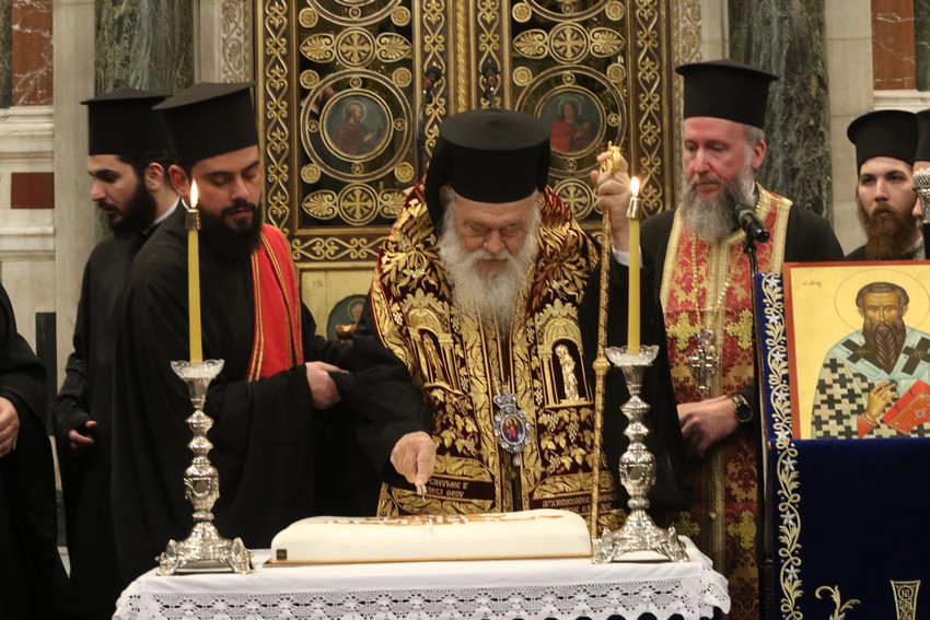 Ο Αρχιεπίσκοπος ευλόγησε την Βασιλόπιτα και ευχήθηκε «ο Θεός να ευλογήσει τα βήματα όλων στην πορεία του καινούριου χρόνου. Όλοι μας να ζήσουμε έναν χρόνο δημιουργικό, έναν χρόνο ειρηνικό, έναν χρόνο με αγαθά δημιουργήματα, όπως επιθυμεί η ψυχή του καθενός από εμάς. Εύχομαι, λοιπόν, σε όλους όσοι βρίσκονται σήμερα σε αυτόν τον χώρο, αλλά και σε όσους βρίσκονται αλλού και αγωνίζονται ο καθένας με τον δικό του τρόπο, οι αγώνες μας να είναι ευλογημένοι και να μας χαρίσουν μια χρονιά ειρηνική πάνω απ’ όλα, μια χρονιά χωρίς προβλήματα, με καλούς και καρποφόρους αγώνες και αποτελέσματα. Χρόνια πολλά και ευλογημένα».