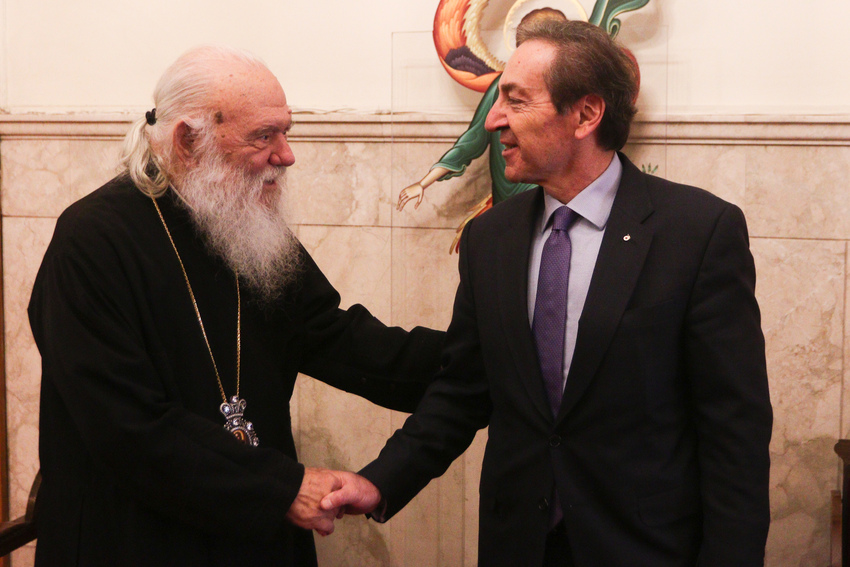 Από την πλευρά του ο Αρχιεπίσκοπος ευχαρίστησε τον Υπουργό, διότι, «στο άκουσμα των προβλημάτων και των δυσκολιών στο ποιμαντικό μας έργο, έτεινε ώτα ευήκοα. Έτσι, είναι κοντά μας σήμερα, κουβεντιάσαμε γενικότερα για το εκκλησιαστικό έργο της Εκκλησίας της Ελλάδος και, πιο συγκεκριμένα, για το έργο στην Αρχιεπισκοπή Αθηνών. Εστιάσαμε τη συζήτηση σε ένα κέντρο, καινούργιο, που φιλοδοξούμε να γίνει στην περιοχή των συνόρων Αττικής και Βοιωτίας, ένα έργο τεράστιο, που θα ανεγερθεί με δωρεά και θα καλύπτει τις ανάγκες ανθρώπων που πάσχουν από άνοια, από περιπατητικές δυσκολίες και χρειάζονται αρκετή βοήθεια. Ο κύριος Πρωθυπουργός ήδη δήλωσε ότι τον ενδιαφέρει αυτό το θέμα γενικότερα στην Ελλάδα και έτσι εκμεταλλεύτηκα την ευκαιρία της γνωριμίας μας με τον Υπουργό και του είπα: «Έλα, γιατί σε χρειαζόμαστε». Μέσα σε αυτό, λοιπόν, το πλαίσιο έγινε αυτή η συνάντηση, που θα ξαναγίνει, και πιστεύουμε ότι πολύ γρήγορα θα γίνει ένα μεγάλο έργο αγάπης για τους ευάλωτους συμπολίτες μας».