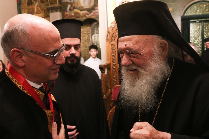 Παρουσία του Αρχιεπισκόπου Αθηνών και πάσης Ελλάδος κ. Ιερωνύμου τελέσθηκε το απόγευμα η απονομή Οφφικίου του Άρχοντος Ακτουαρίου του Οικουμενικού Πατριαρχείου στον κ. Γεώργιο Σωτηρόπουλο, Καθηγητή Χειρουργικής και Μεταμοσχεύσεων του ΕΚΠΑ.