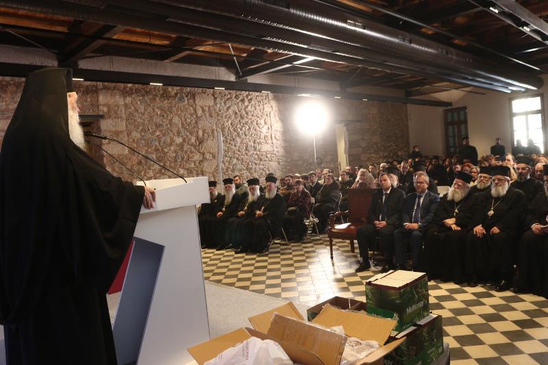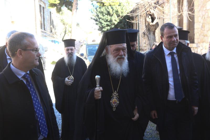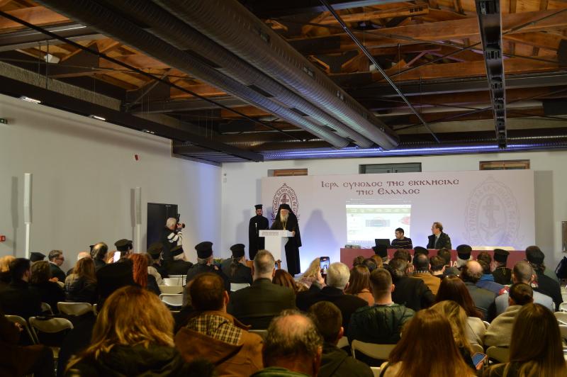Ο Μακαριώτατος Αρχιεπίσκοπος Αθηνών και πάσης Ελλάδος κ. Ιερώνυμος, αφού καλωσόρισε τους Ελλογιμώτατους Καθηγητές και τους προπτυχιακούς και μεταπτυχιακούς φοιτητές, χαρακτήρισε “σταθμό” την συνάντηση αυτή στον ιστορικό χώρο, ο οποίος, όπως σημείωσε, “αφού ένα μέρος του ανακαινίσθηκε με τη συνεργασία Εκκλησίας και Πολιτείας, και παραδόθηκε προς χρήση προ ολίγων μηνών, μεταμορφώνεται σε πνευματικό πνεύμονα στο κέντρο της Αθήνας, εφόσον στεγάζονται σε αυτόν το Ιστορικό Αρχείο και η Βιβλιοθήκη της Ιεράς Συνόδου της Εκκλησίας της Ελλάδος.”. Ακολούθως, ο Μακαριώτατος ανέφερε: “Είναι η πρώτη φορά που συναντιόμαστε σε αυτόν τον ιστορικό εκκλησιαστικό πολυχώρο με την ευκαιρία της εκδήλωσης ενημέρωσης των πρωτοετών φοιτητών του Τμήματος Θεολογίας της Θεολογικής Σχολής του Πανεπιστημίου Αθηνών, το οποίο επέλεξε να πραγματοποιηθεί εδώ, σε ένα τόπο καθαρά επιστημονικής, θεολογικής και εκκλησιαστικής εργασίας, που μπορεί να χρησιμοποιηθεί από την ακαδημαϊκή κοινότητα, τους Καθηγητές και τους φοιτητές ως ιερό εργαλείο επιστημονικής έρευνας, μαρτυρώντας τη στενή συνεργασία μεταξύ της ακαδημαϊκής κοινότητας και της Εκκλησίας.”. Απευθυνόμενος προς τους πρωτοετείς προπτυχιακούς και μεταπτυχιακούς φοιτητές, τόνισε: “Η σκέψη μου και η προσευχή μου στρέφεται προς εσάς που επιλέξατε σε μια δύσκολη εποχή να σπουδάσετε τη θεολογική Επιστήμη, συμβάλλοντας στην ανάδειξη των θεολογικών σπουδών. Σας ονομάζουμε παιδιά – συνεργάτες της Εκκλησίας και σας καλούμε να χρησιμοποιείτε αυτόν τον χώρο για τις επιστημονικές σας έρευνες, με σκοπό τόσο την προσωπική σας επιστημονική πρόοδο, όσο και την προσφορά στο σώμα της Εκκλησίας.”.