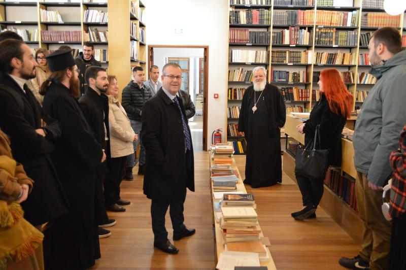 Μετά το πέρας της Συνεδρίας, ο Μακαριώτατος Αρχιεπίσκοπος και οι Σεβασμιώτατοι Συνοδικοί Μητροπολίτες μετέβησαν στην Αίθουσα Υποδοχής Επίσημων Προσκεκλημένων του Ιστορικού Εκκλησιαστικού Πολυχώρου επί της οδού Δεινοκράτους, όπου από της 9ης πρωινής πραγματοποιήθηκε η Εκδήλωση Ενημέρωσης Πρωτοετών Φοιτητών (Προπτυχιακών – Μεταπτυχιακών) Τμήματος Θεολογίας της Θεολογικής Σχολής του Εθνικού και Καποδιστριακού Πανεπιστημίου Αθηνών. Στις εγκαταστάσεις υποδέχθηκε τους πρωτοετείς ο Σεβασμιώτατος Μητροπολίτης Βρεσθένης κ. Θεόκλητος, ως Επόπτης λειτουργίας του Ιστορικού Αρχείου της Εκκλησίας της Ελλάδος, και οι εργασίες άρχισαν με την περιήγηση των φοιτητών στο Αρχείο και την Βιβλιοθήκη της Ιεράς Συνόδου, όπου τους ξενάγησαν αντίστοιχα ο Διευθυντής του Ιστορικού Αρχείου, Αν. Καθηγητής κ. Νικόλαος Τόμπρος και ο Διευθυντής της Βιβλιοθήκης κ. Εμμανουήλ Μελινός.