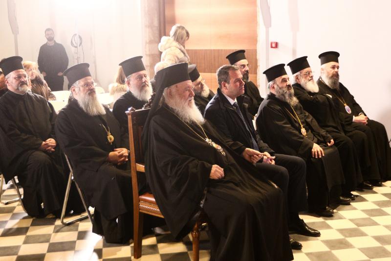 Στην εκδήλωση παρευρέθησαν οι Σεβασμιώτατοι Συνοδικοί Μητροπολίτες Χαλκίδος κ. Χρυσόστομος, Νέας Σμύρνης κ. Συμεών, Μεσογαίας και Λαυρεωτικής κ. Νικόλαος, Πατρών κ. Χρυσόστομος, Κυθήρων και Αντικυθήρων κ. Σεραφείμ, Καστορίας κ. Καλλίνικος, Φλωρίνης, Πρεσπών και Εορδαίας κ. Ειρηναίος και ο Αρχιγραμματεύς της Ιεράς Συνόδου, Θεοφιλέστατος Επίσκοπος Σκιάθου κ. Ιωάννης.