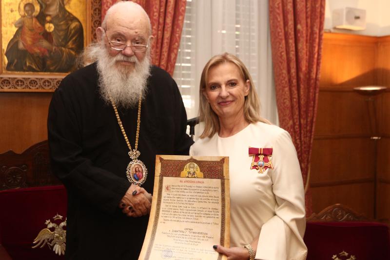 Σε σεμνή τελετή που πραγματοποιήθηκε το μεσημέρι στην Ιερά Αρχιεπισκοπή Αθηνών, ο Μακαριώτατος απένειμε στην κα Μπουζάλη το Μετάλλιο της Αγίας Οσιομάρτυρος Φιλοθέης της Αθηναίας και στον κ. Τρυφωνόπουλο το Μετάλλιο του Αγίου Διονυσίου του Αρεοπαγίτου.