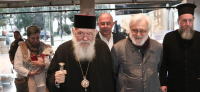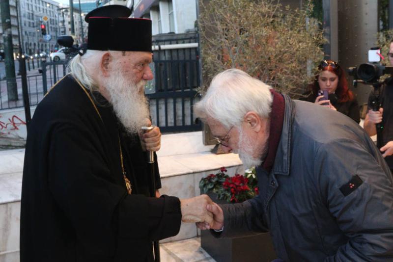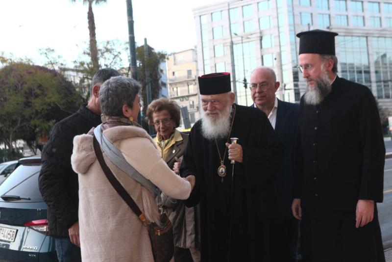 Τον Μακαριώτατο συνόδευαν ο Θεοφιλέστατος Επίσκοπος Ταλαντίου κ. Θεολόγος, ο Γενικός Αρχιερατικός Επίτροπος της Ιεράς Αρχιεπισκοπής Αθηνών, Αιδεσιμολογιώτατος Πρωτοπρεσβύτερος π. Εμμανουήλ Παπαμικρούλης, ο Γενικός Διευθυντής του Φιλανθρωπικού Οργανισμού της Ιεράς Αρχιεπισκοπής Αθηνών «Αποστολή», κ. Κωνσταντίνος Δήμτσας, ο Διευθυντής του Ιδιαιτέρου Γραφείου του, κ. Ιωάννης Τσούρας, ο Διευθυντής του Γραφείου Ενημερώσεως, Επικοινωνίας και Τύπου και Εκπρόσωπος Τύπου του, κ. Χάρης Κονιδάρης και ο Καλλιτεχνικός Διευθυντής της Ορχήστρας «ΚΑΝΩΝ» της Ιεράς Αρχιεπισκοπής Αθηνών, κ. Γεώργιος Δεμελής.