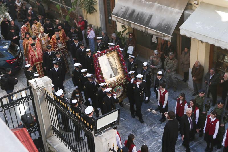 Στη συνέχεια πραγματοποιήθηκε η λιτάνευση των ιερών λειψάνων και της ιεράς εικόνας, με τη συνοδεία αγημάτων του Λιμενικού Σώματος και του Στρατού Ξηράς, της Φιλαρμονικής του Δήμου Αθηναίων, κλήρου και λαού. Το ιερό λείψανο της Αγίας Φιλοθέης κόμισαν Μοναχές από τις Ιερές Μονές Νταού Πεντέλης, Θεομήτορος και Αγίου Ιωάννου Καρέα, ενώ τελετάρχης ήταν ο προϊστάμενος του Μητροπολιτικού Ιερού Ναού, Πρωτοπρεσβύτερος Θωμάς Συνοδινός.