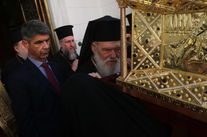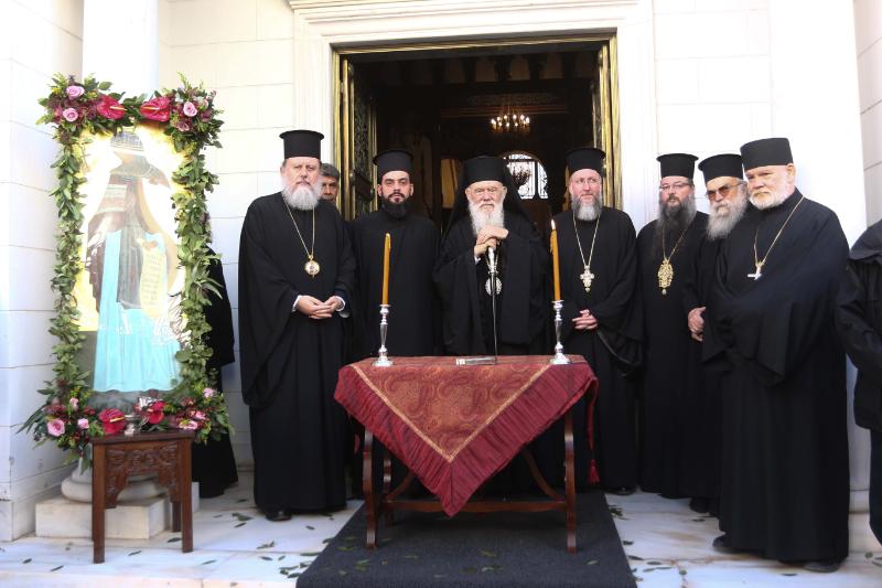 Να παραδειγματιστούμε από τη ζωή της Αγίας Φιλοθέης κάλεσε τους πιστούς ο Αρχιεπίσκοπος Αθηνών και πάσης Ελλάδος κ. Ιερώνυμος, αμέσως μετά τη δέηση που ανέπεμψε, όταν η λιτάνευση του ιερού σκηνώματος και της ιεράς εικόνας της Αγίας κατέφθασε έξω από την Ιερά Αρχιεπισκοπή Αθηνών.