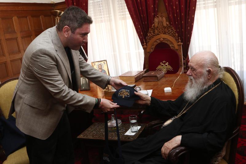 Κατόπιν, ο Μακαριώτατος συναντήθηκε με τον Πρόεδρο της Πανελλήνιας Ένωσης Πληρωμάτων Ιδιωτικών και Επαγγελματικών Θαλαμηγών κ. Γεώργιο Βάλλη.
