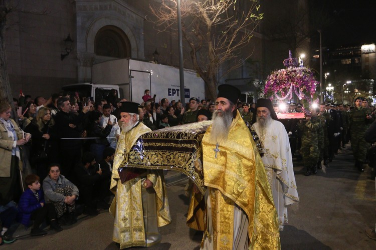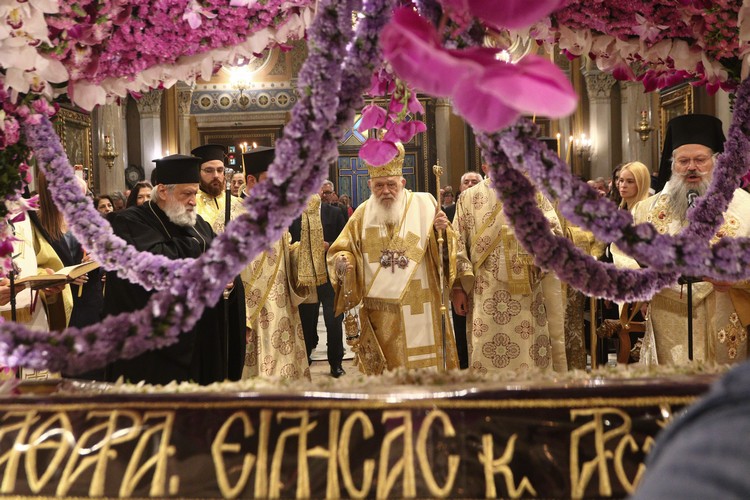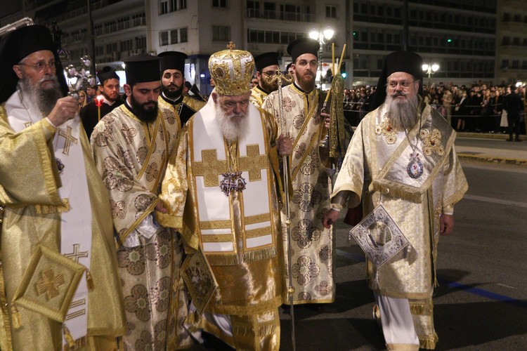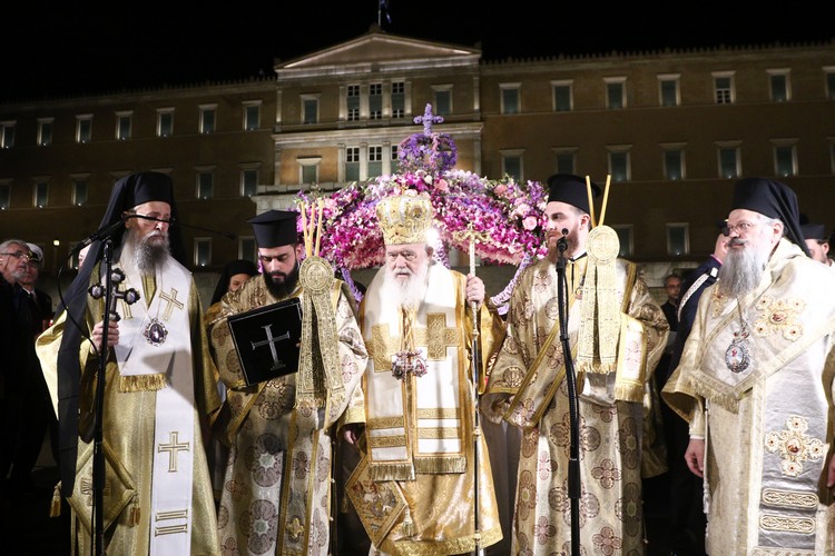 Κατά την περιφορά του Επιταφίου και μετά την δέηση στο μνημείο του Αγνώστου Στρατιώτη, μπροστά από το Κοινοβούλιο, ο Αρχιεπίσκοπος τόνισε: «Με ιερή κατάνυξη και συγκίνηση πορευόμαστε απόψε μαζί λιτανεύοντας τον Επιτάφιο του Κυρίου μας, συμμετέχοντας στο μέγα μυστήριο του Πάθους Του. Σε αυτή τη νύχτα της θλίψεως, η Εκκλησία δεν σιωπά· προσεύχεται, ελπίζει και αγκαλιάζει κάθε άνθρωπο.